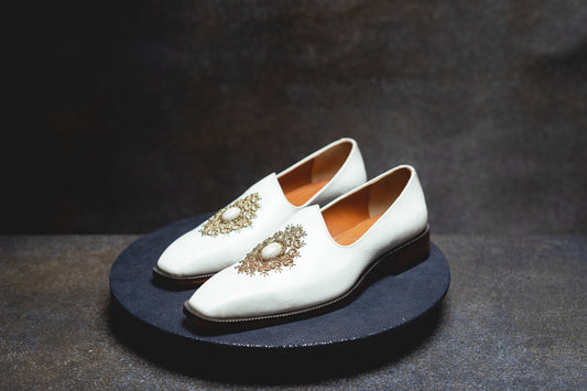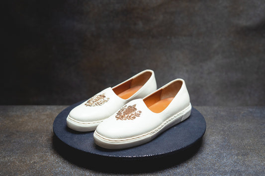 WHITE WITH HANDMADE EMBRIODERY SNEAKER SOLE JUTTI