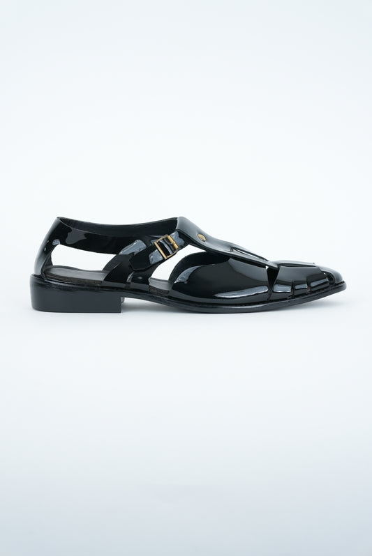 GLOSSY BLACK WITH BUCKLE CUT SANDAL