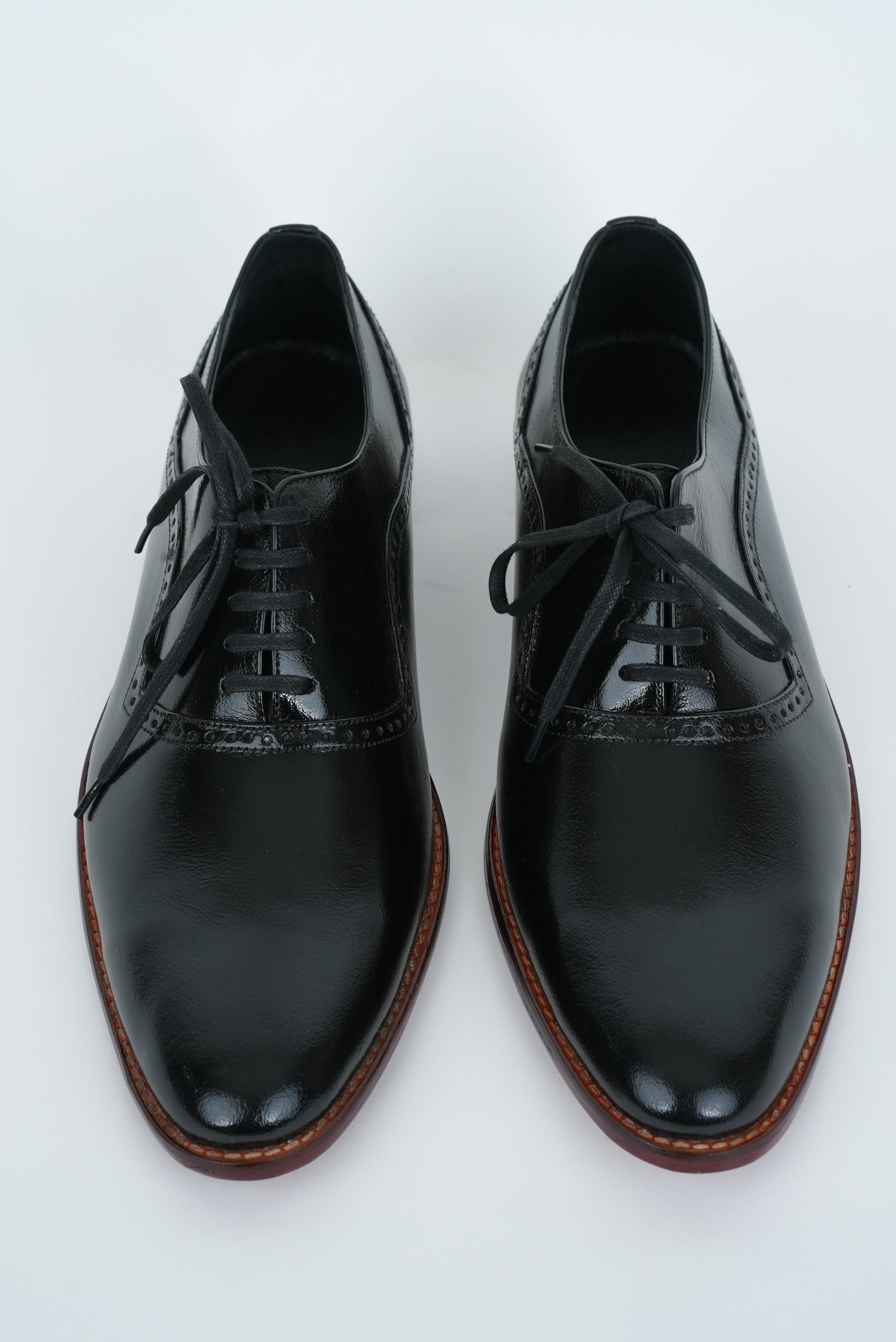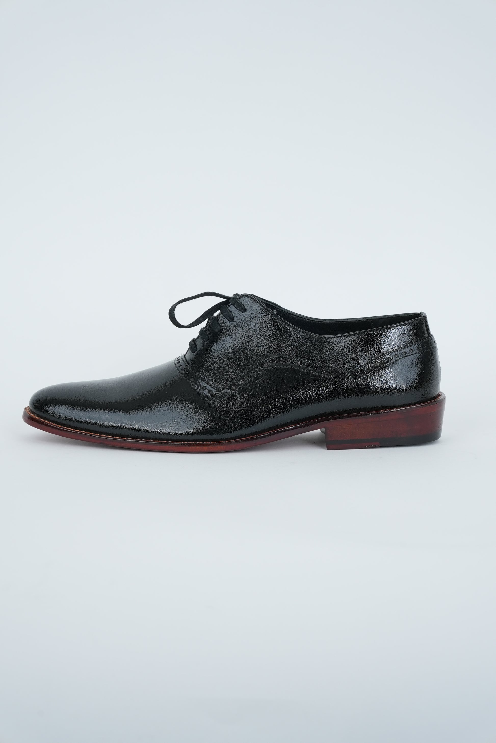 ASH BROWN LACED WHOLECUT SHOES WITH A SQUARE POINTED TOE AND STACKED HEEL.