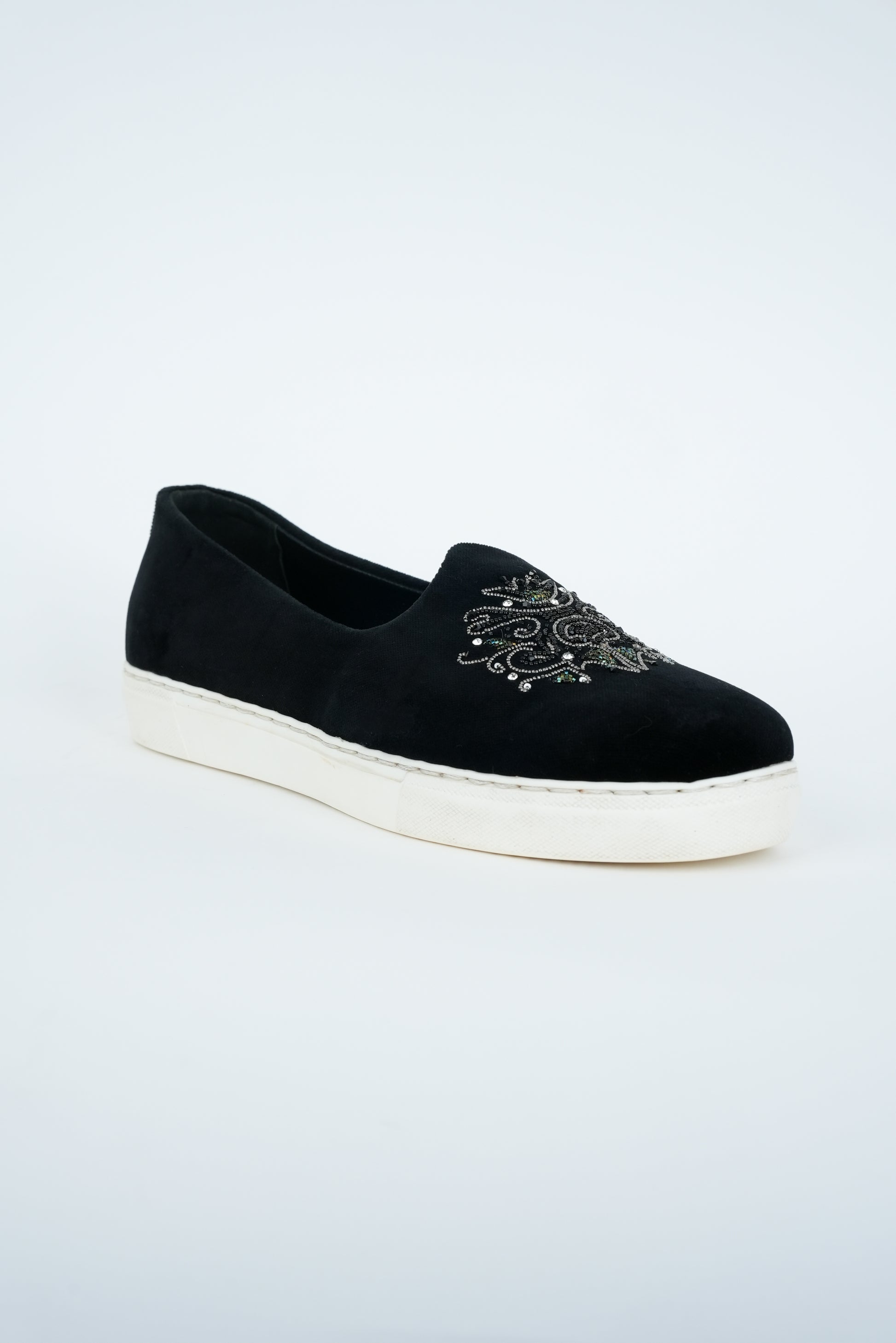 BLACK WITH HANDMADE EMBRIODERY SNEAKER SOLE JUTTI