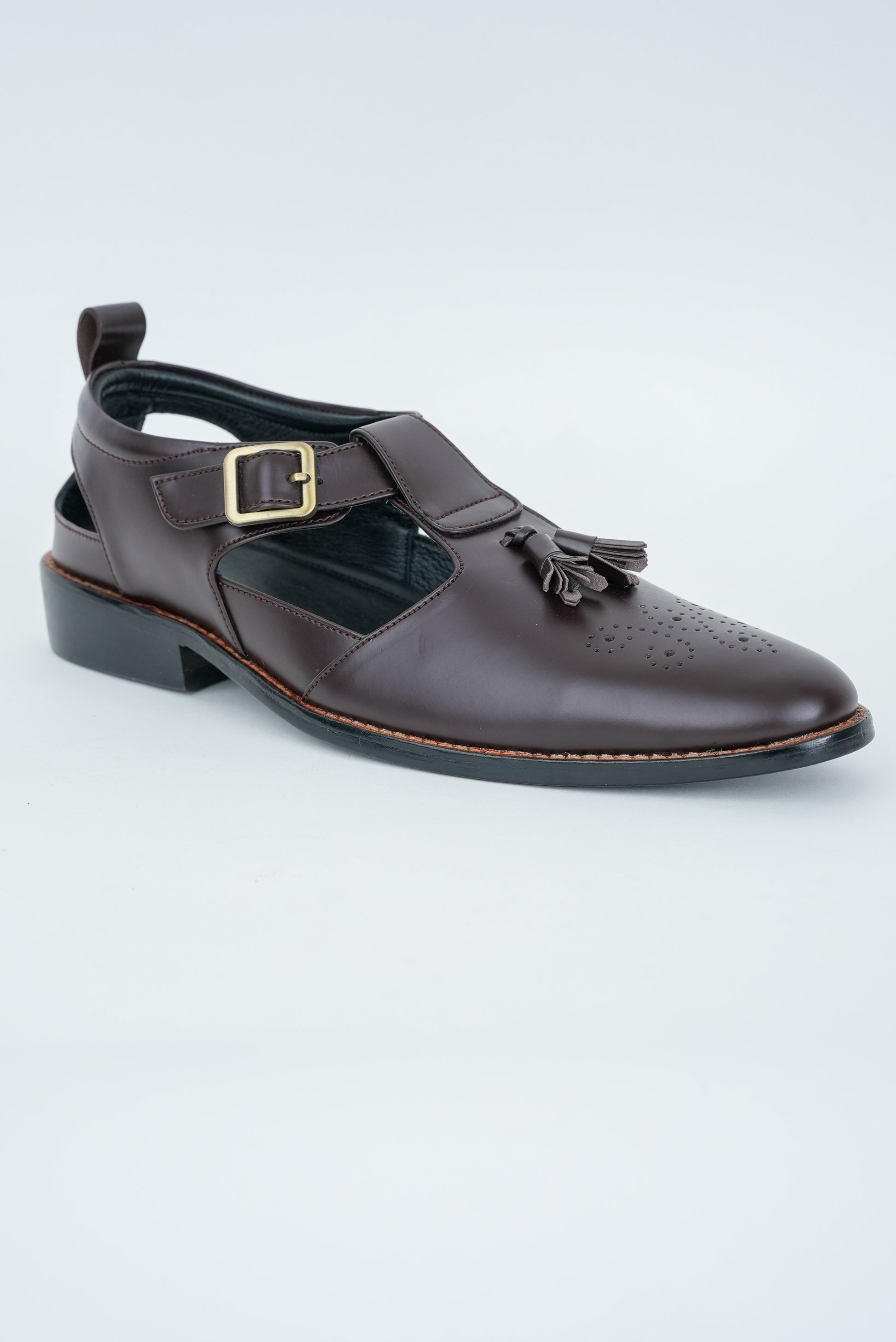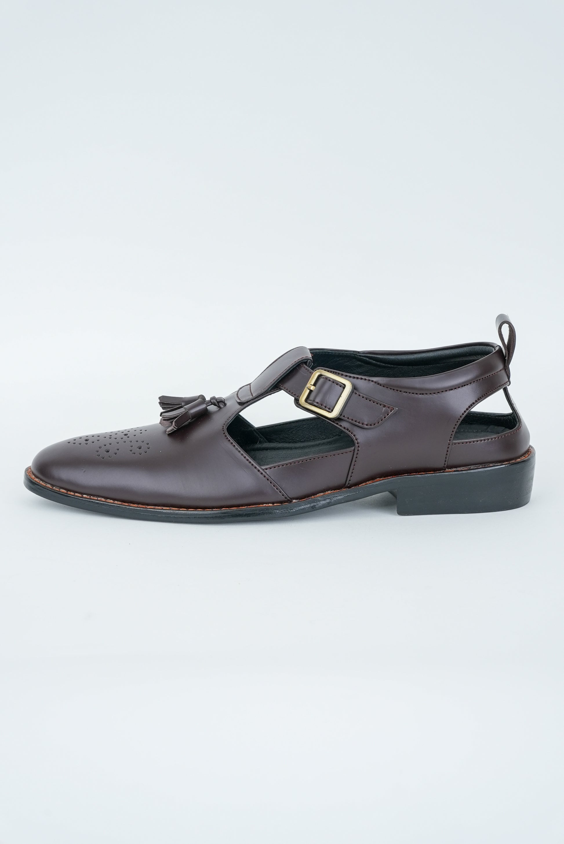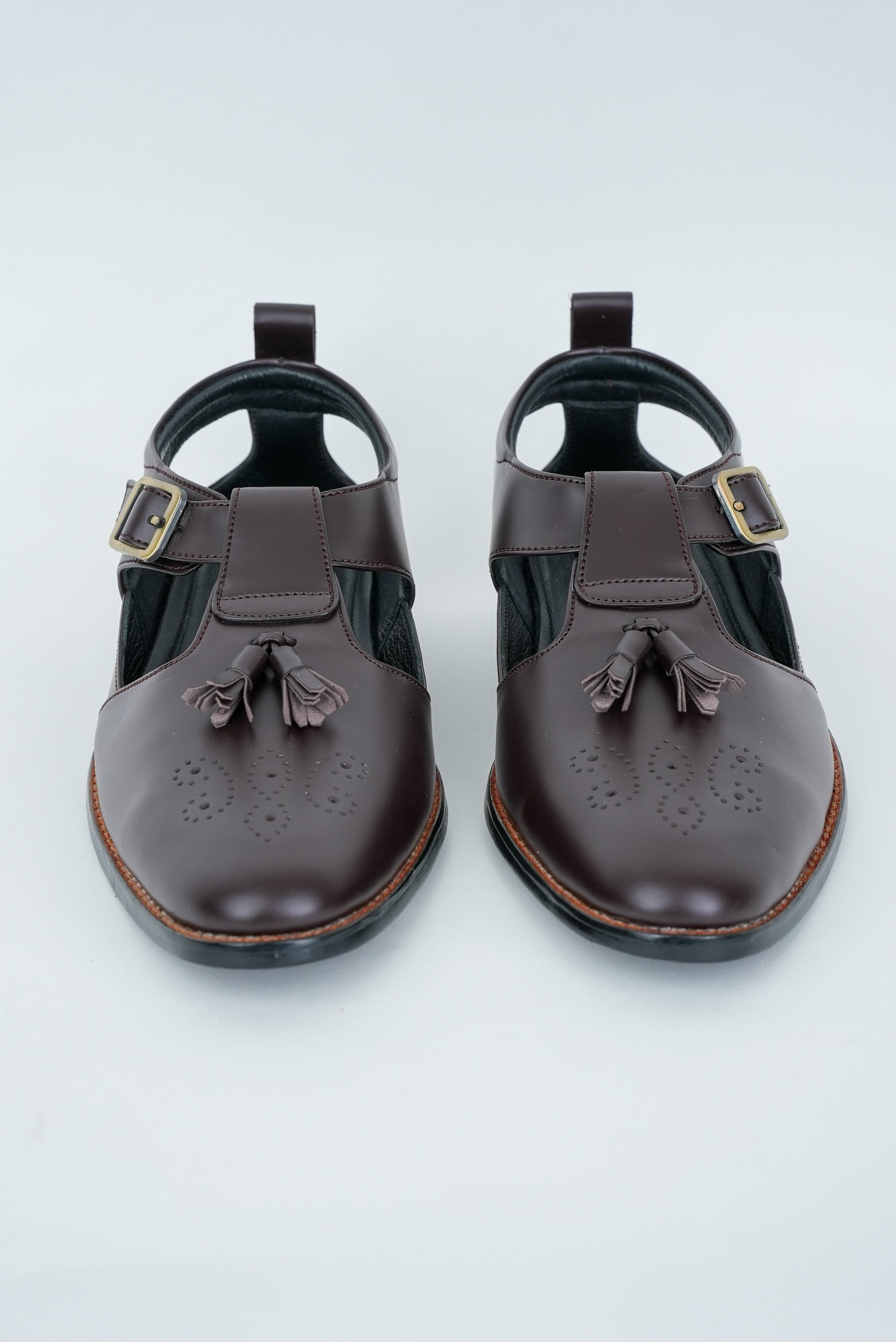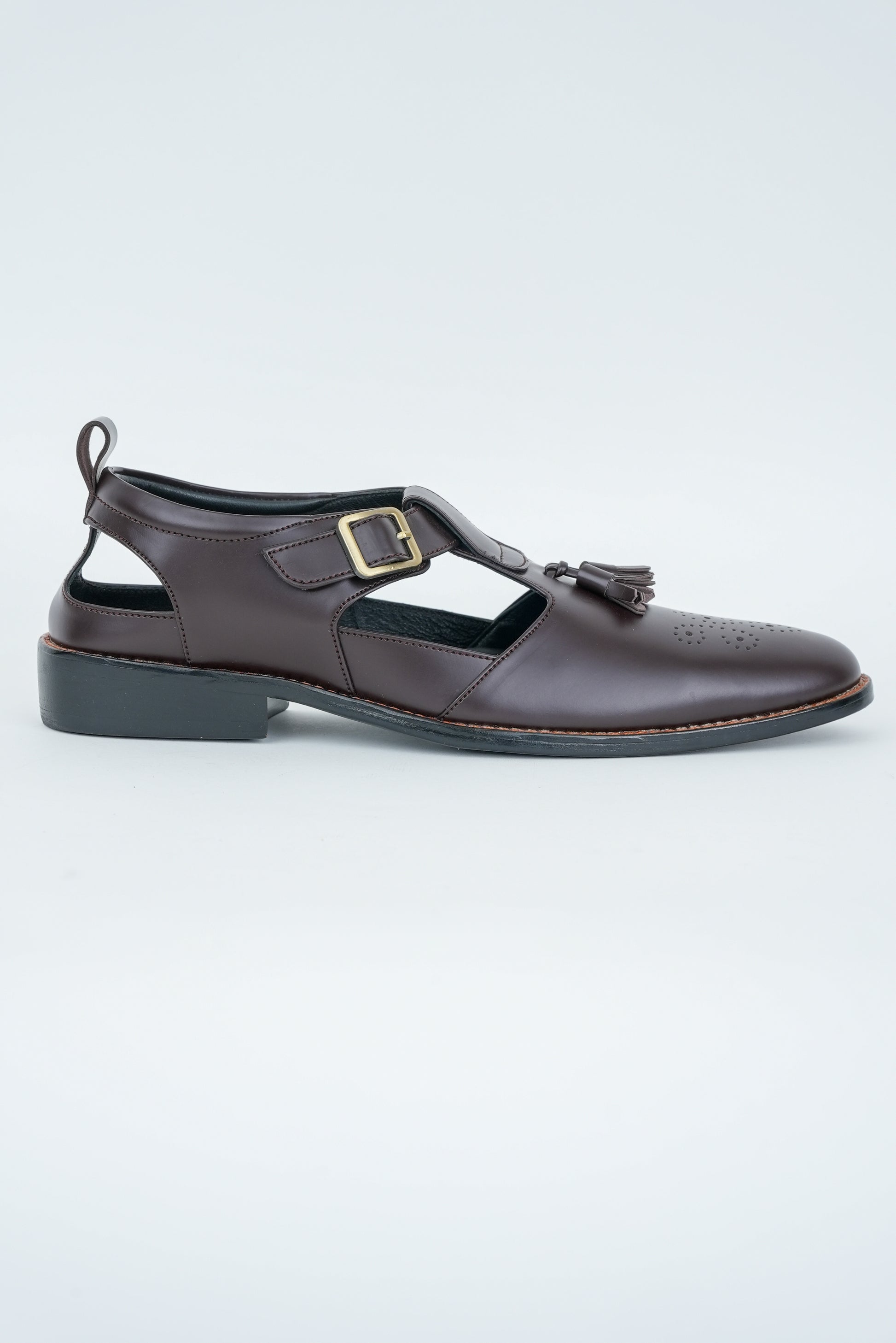 CLASSIC BROWN BUFF WITH TASSEL AND BUCKLE SANDAL