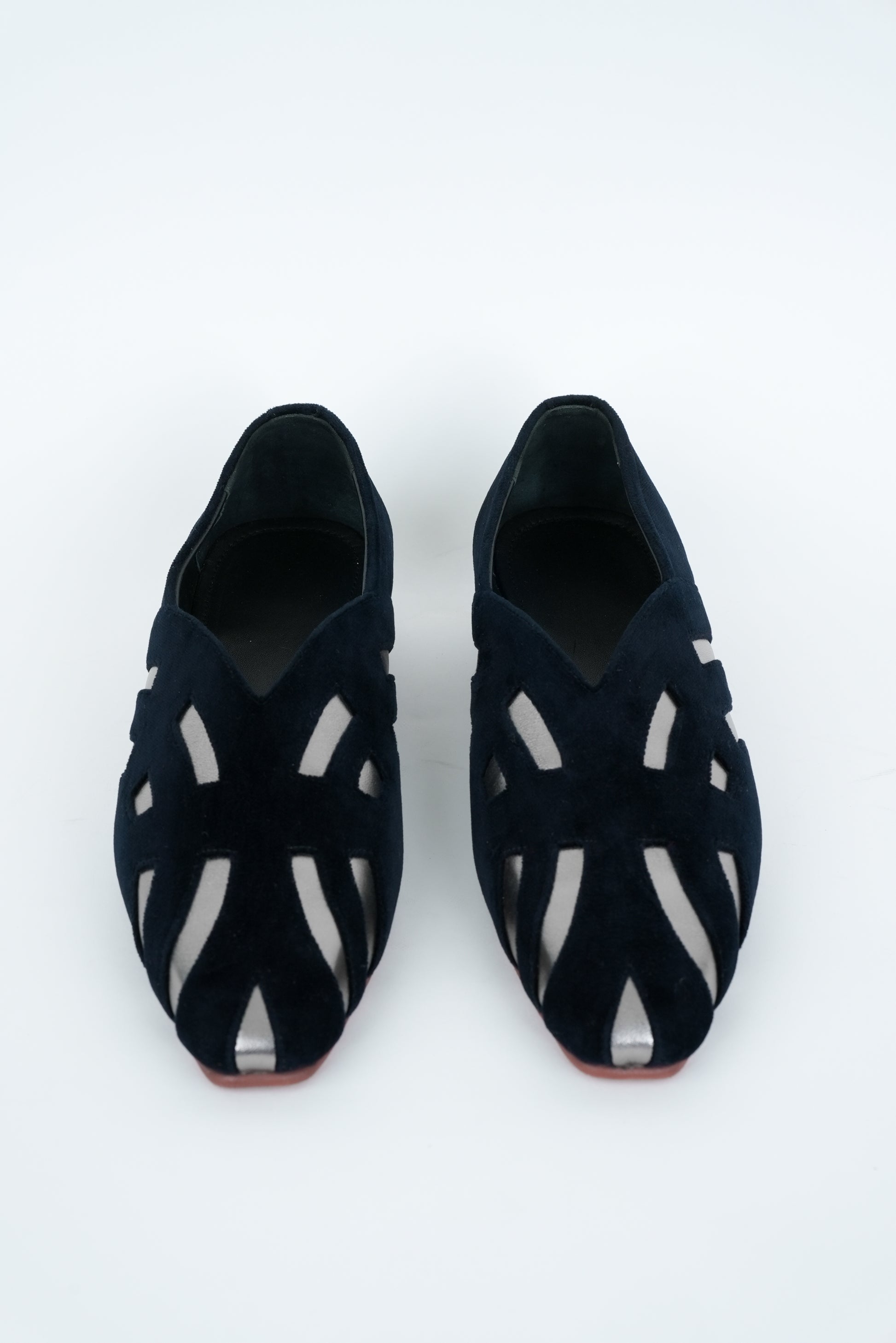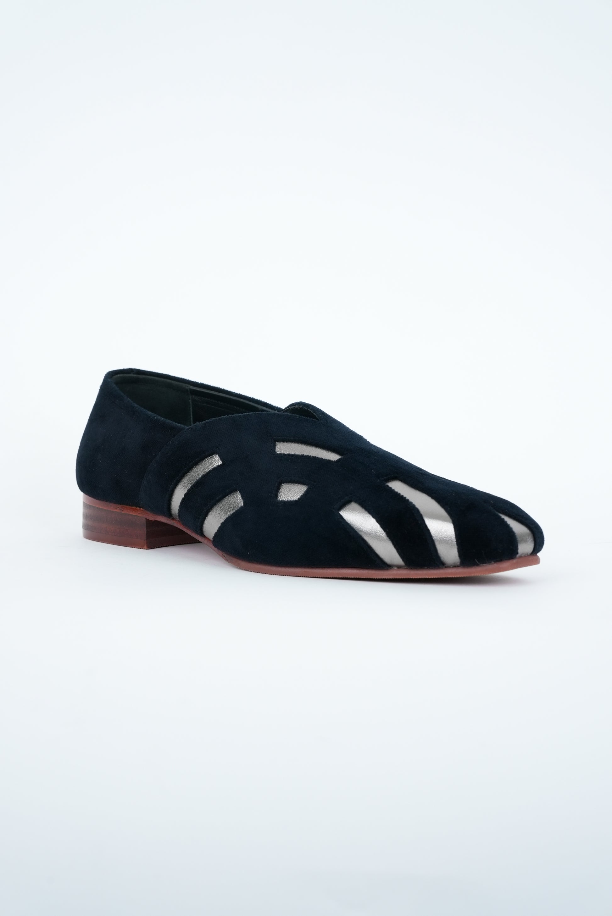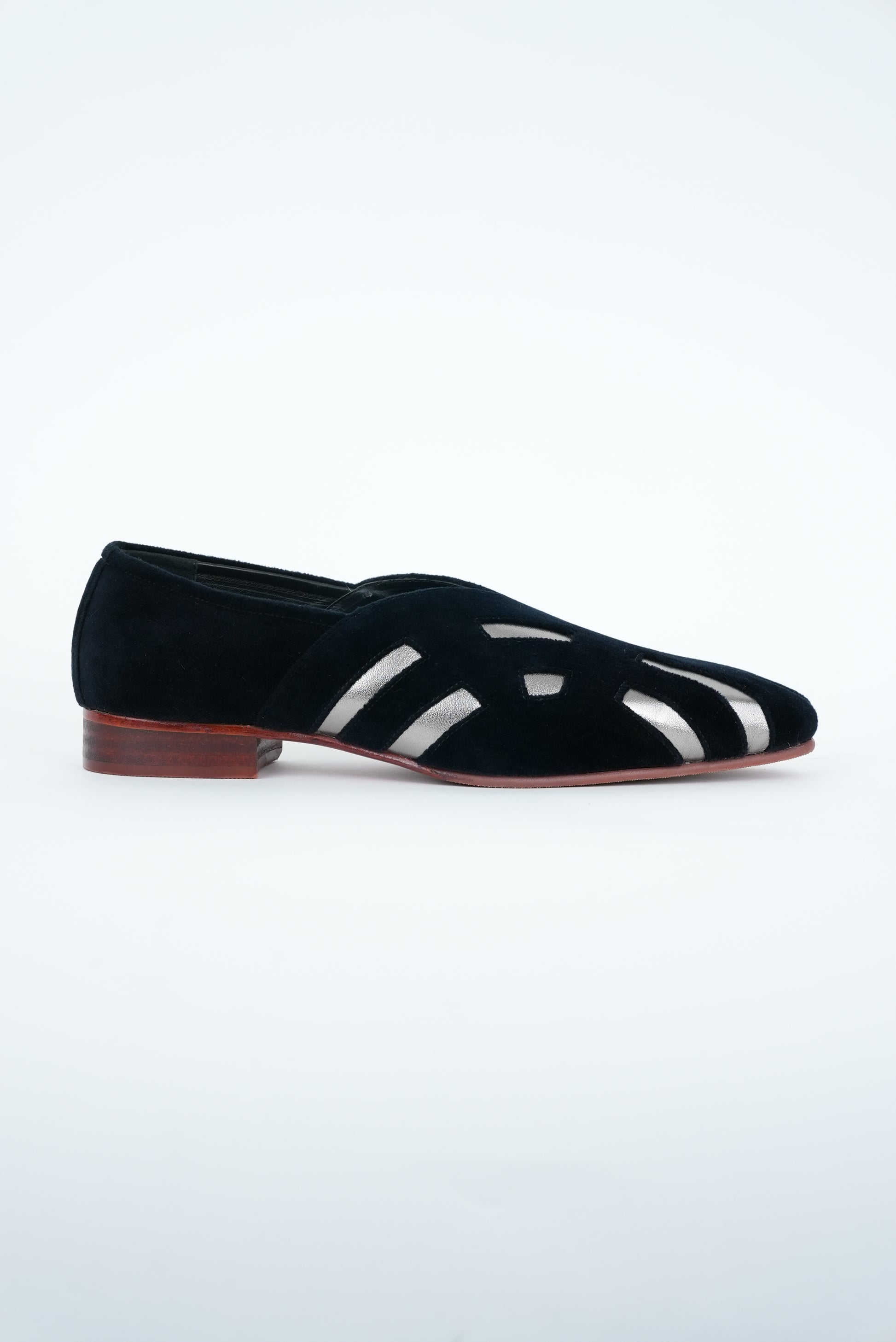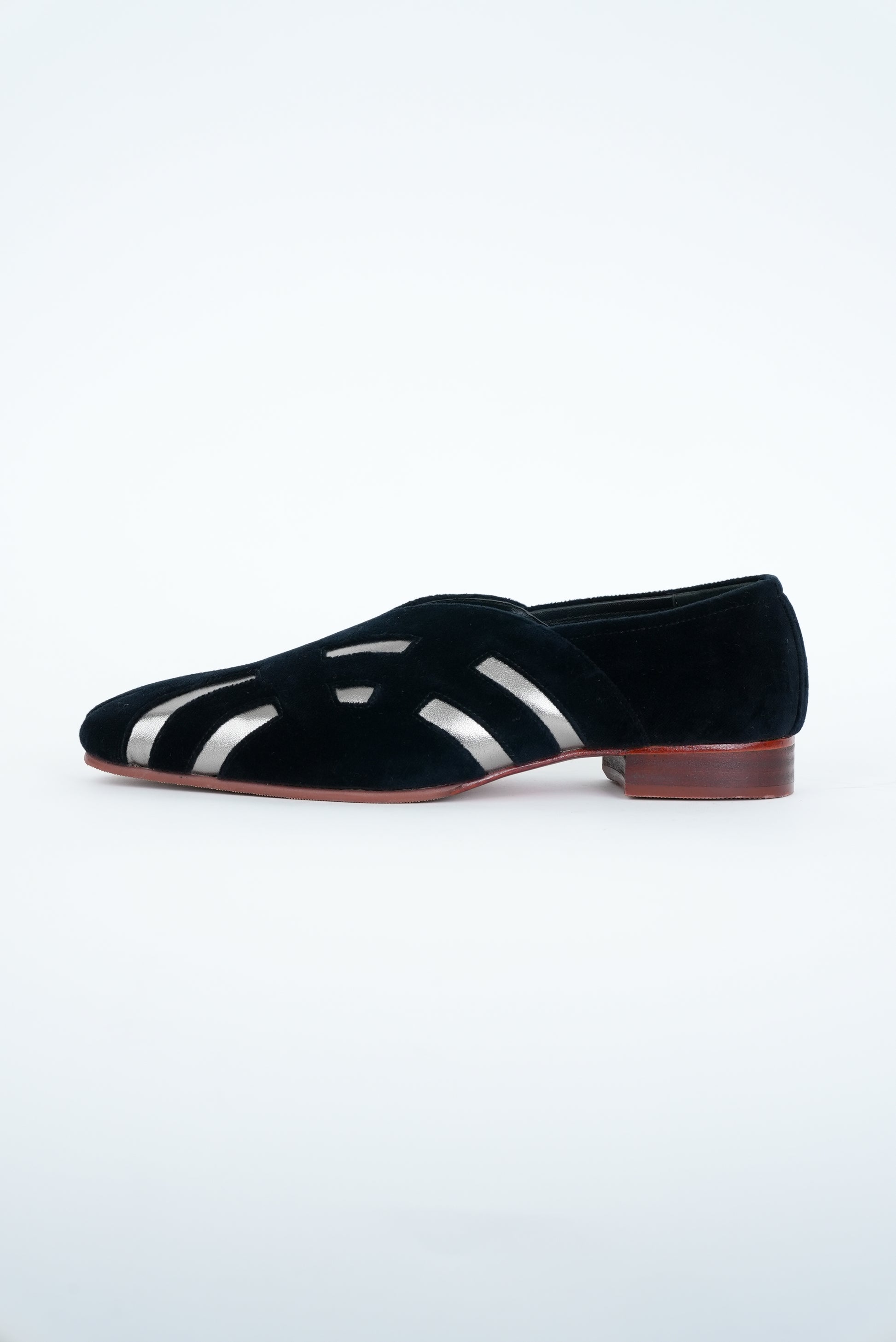• BLACK SUEDE WITH GUNMETAL METALLIC LEATHER