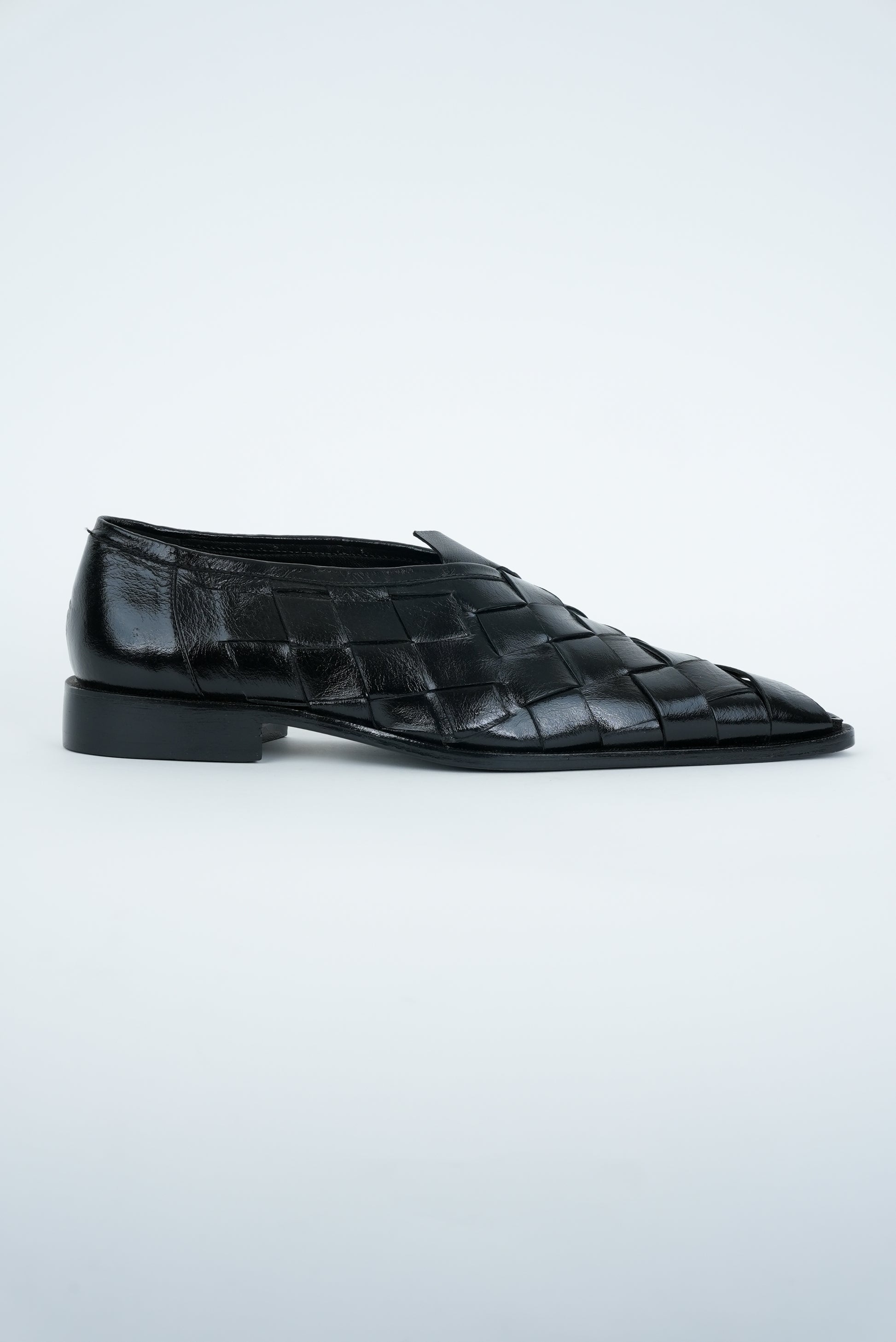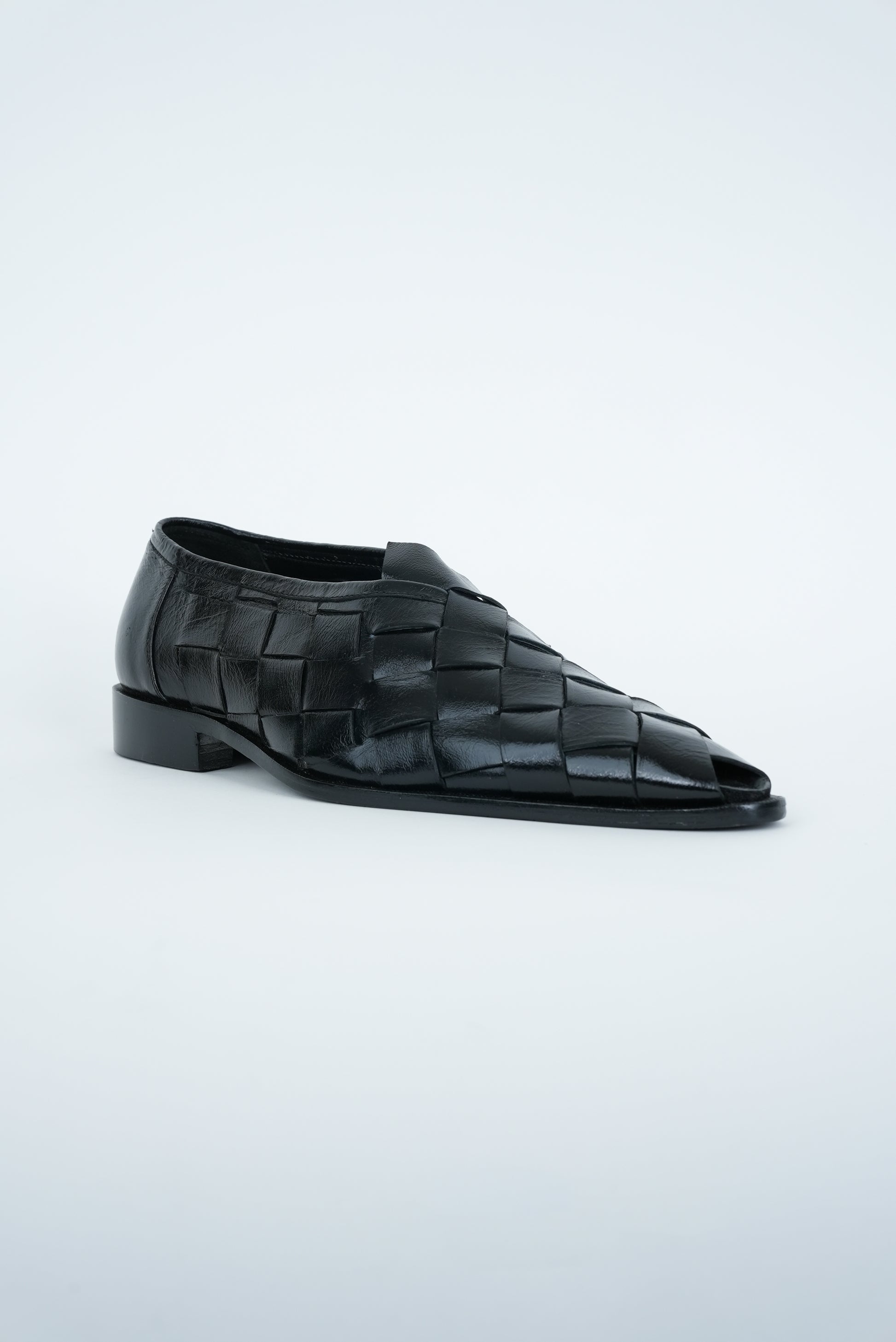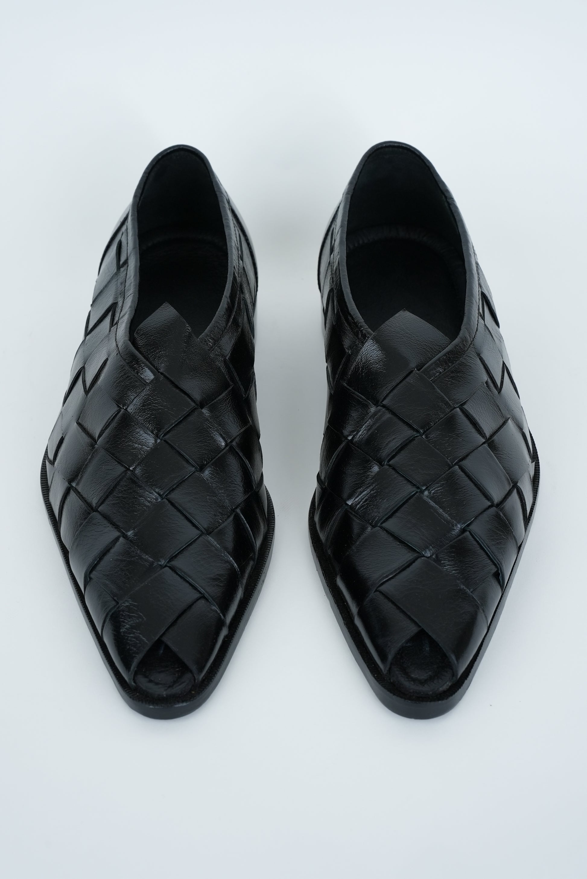 CLASSIC BLACK CRISS-CROSS WEAVE POINTED TOE JUTTI