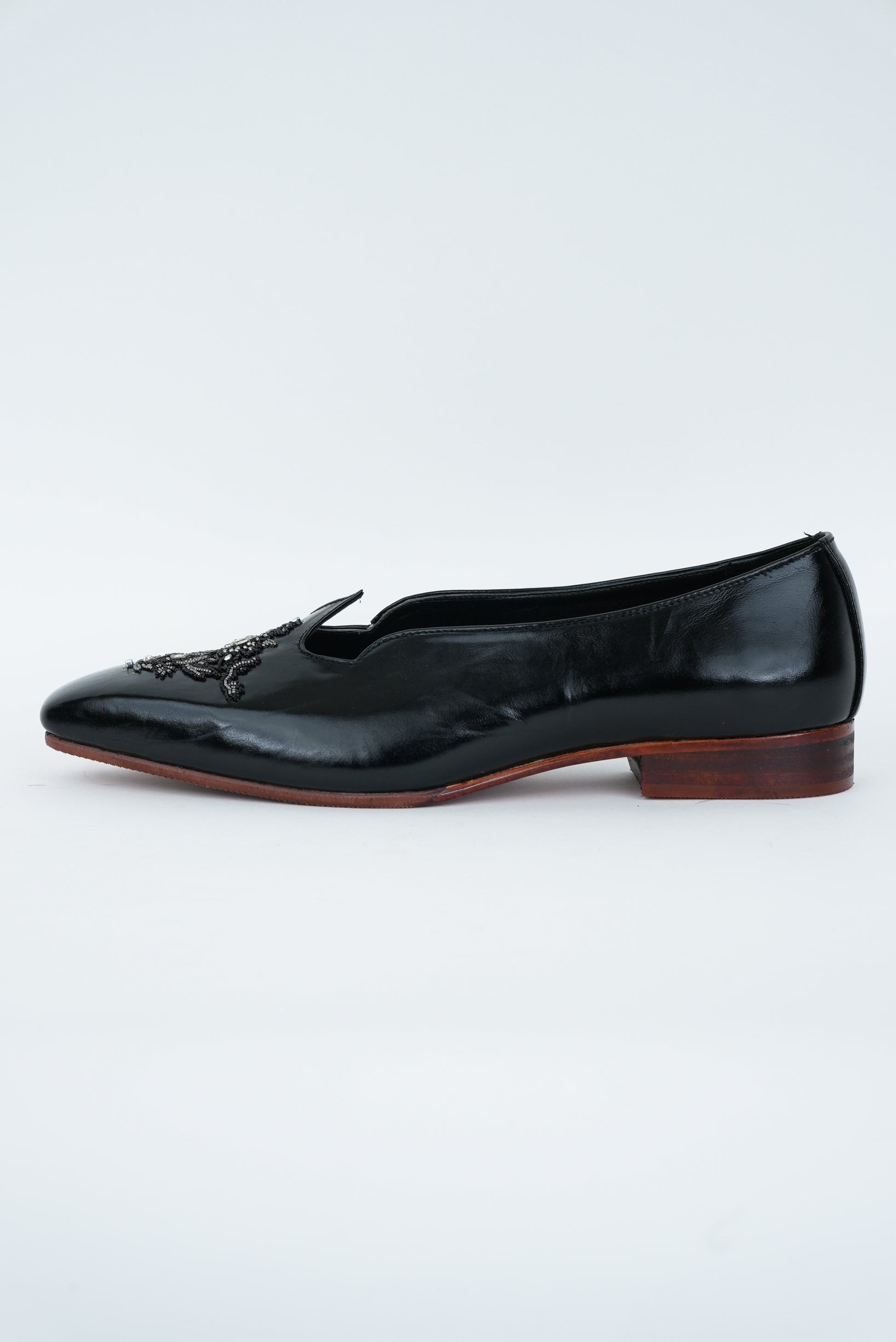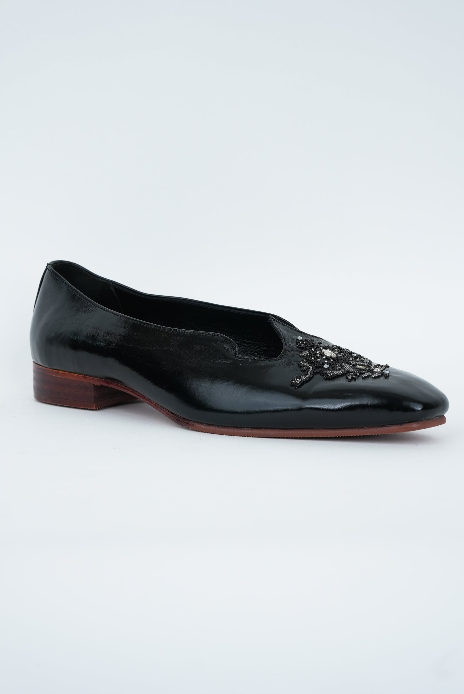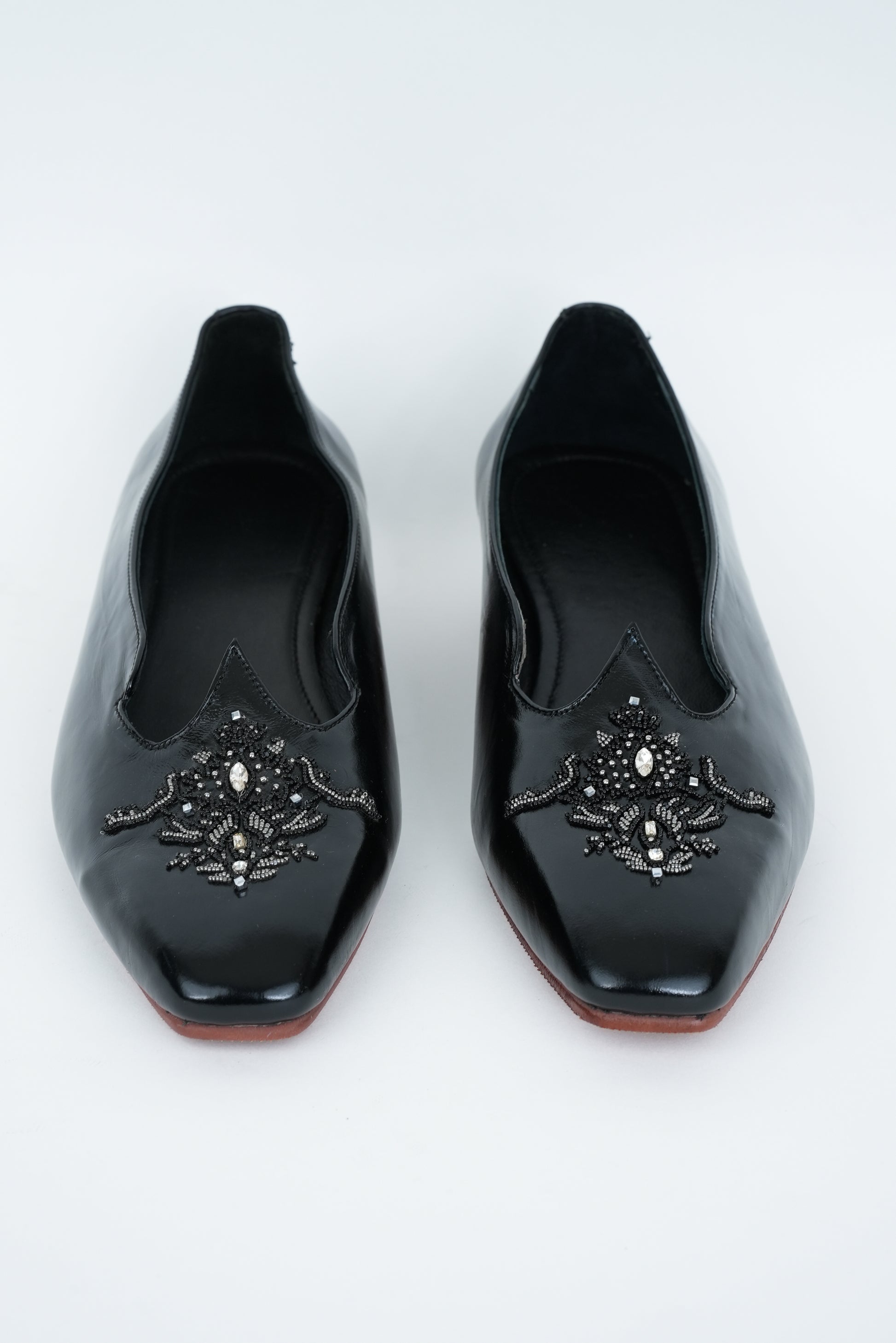 CLASSIC BLACK ON BLACK EMBRIODERY WITH SQUARE POINTED TOE JUTTI