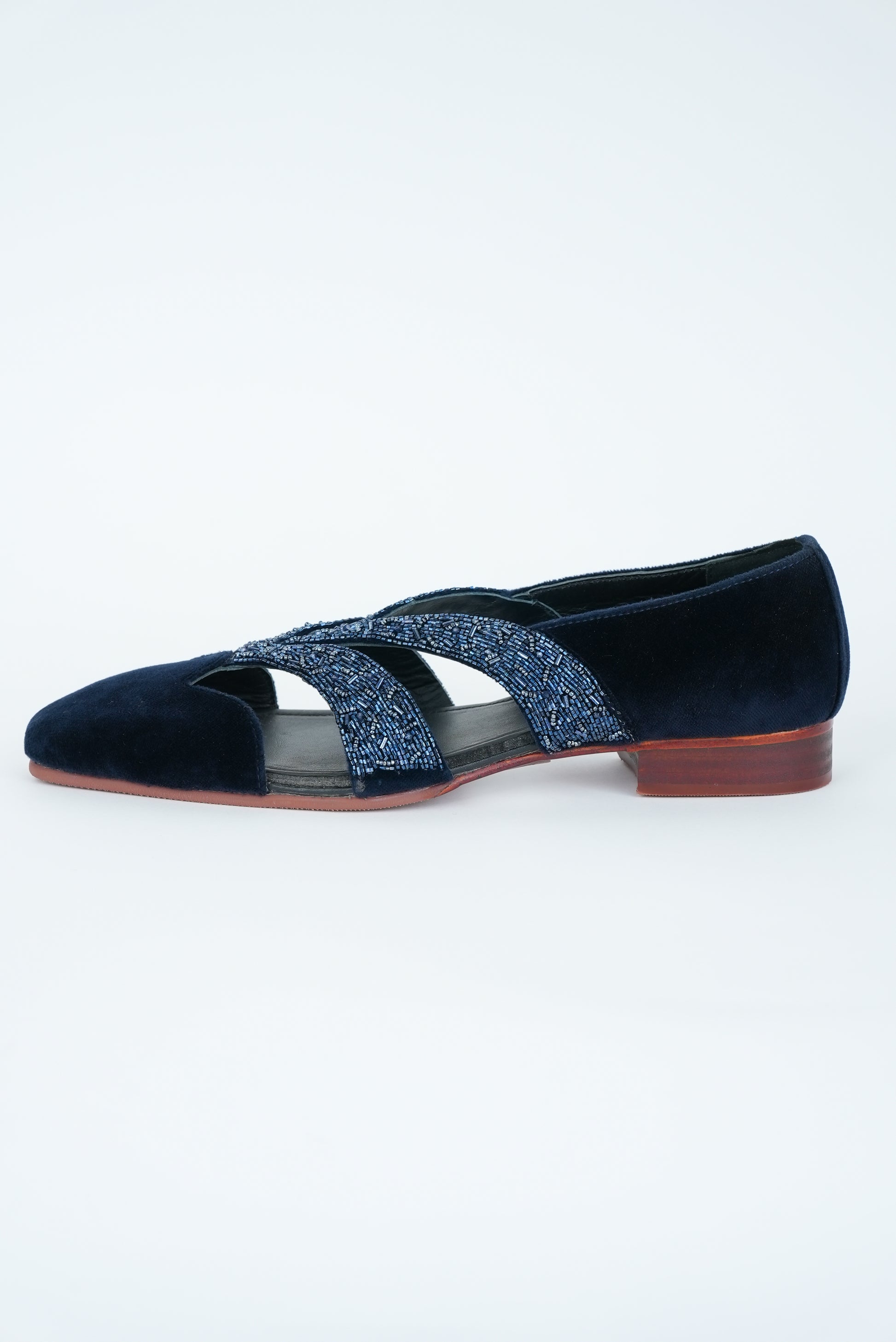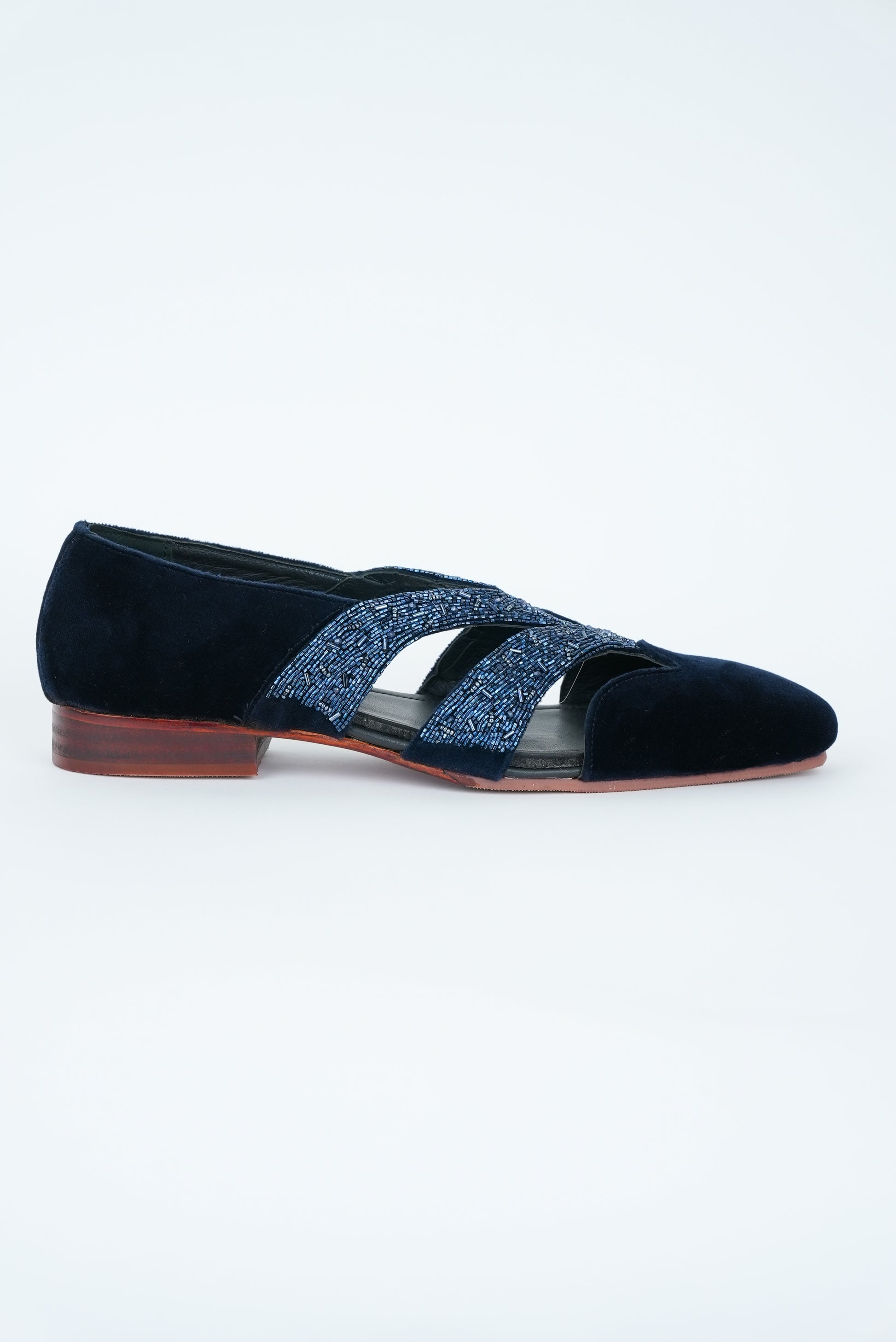 EVENING NAVY BLUE WITH CUT METALLIC BLUE STRIPE HAND EMBRIODERY TUXEDO