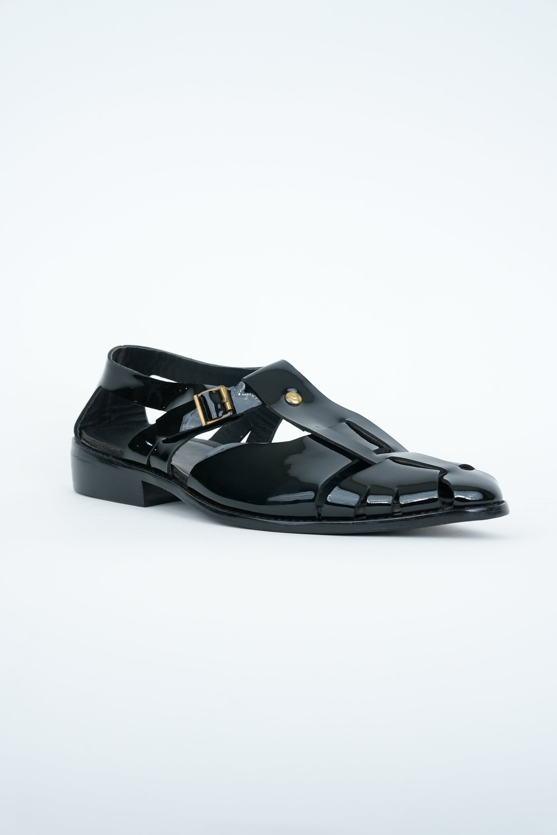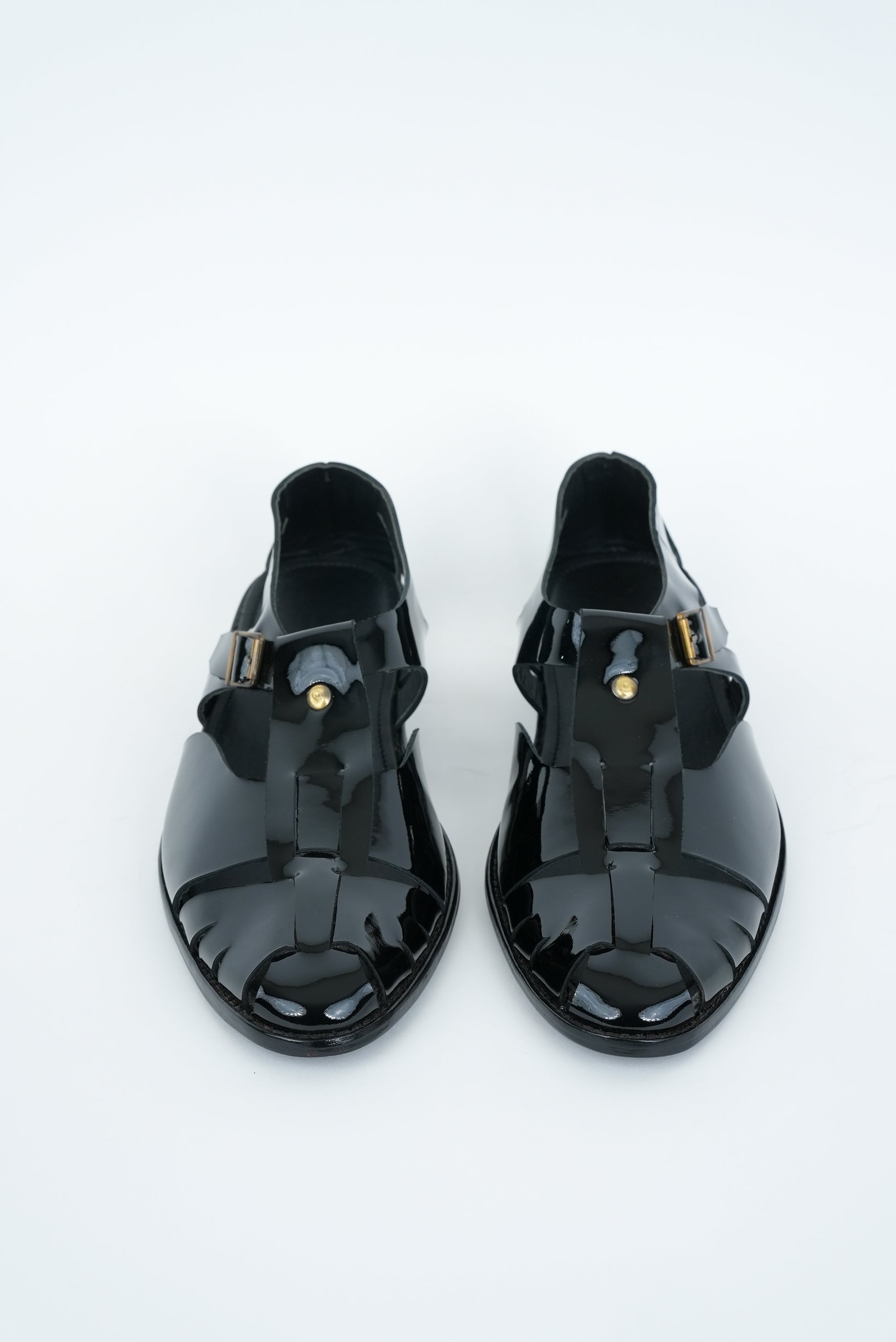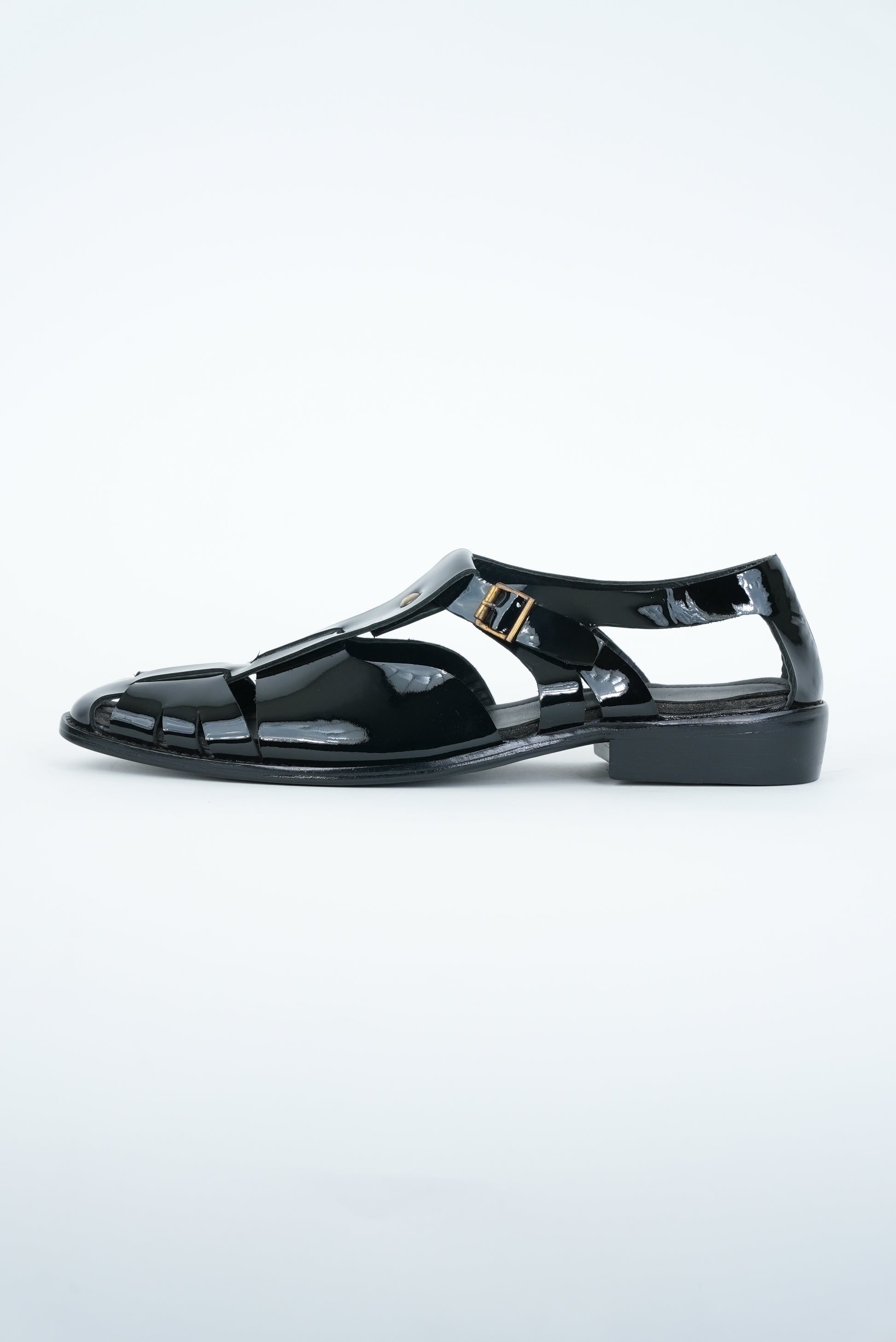 GLOSSY BLACK WITH BUCKLE CUT SANDAL