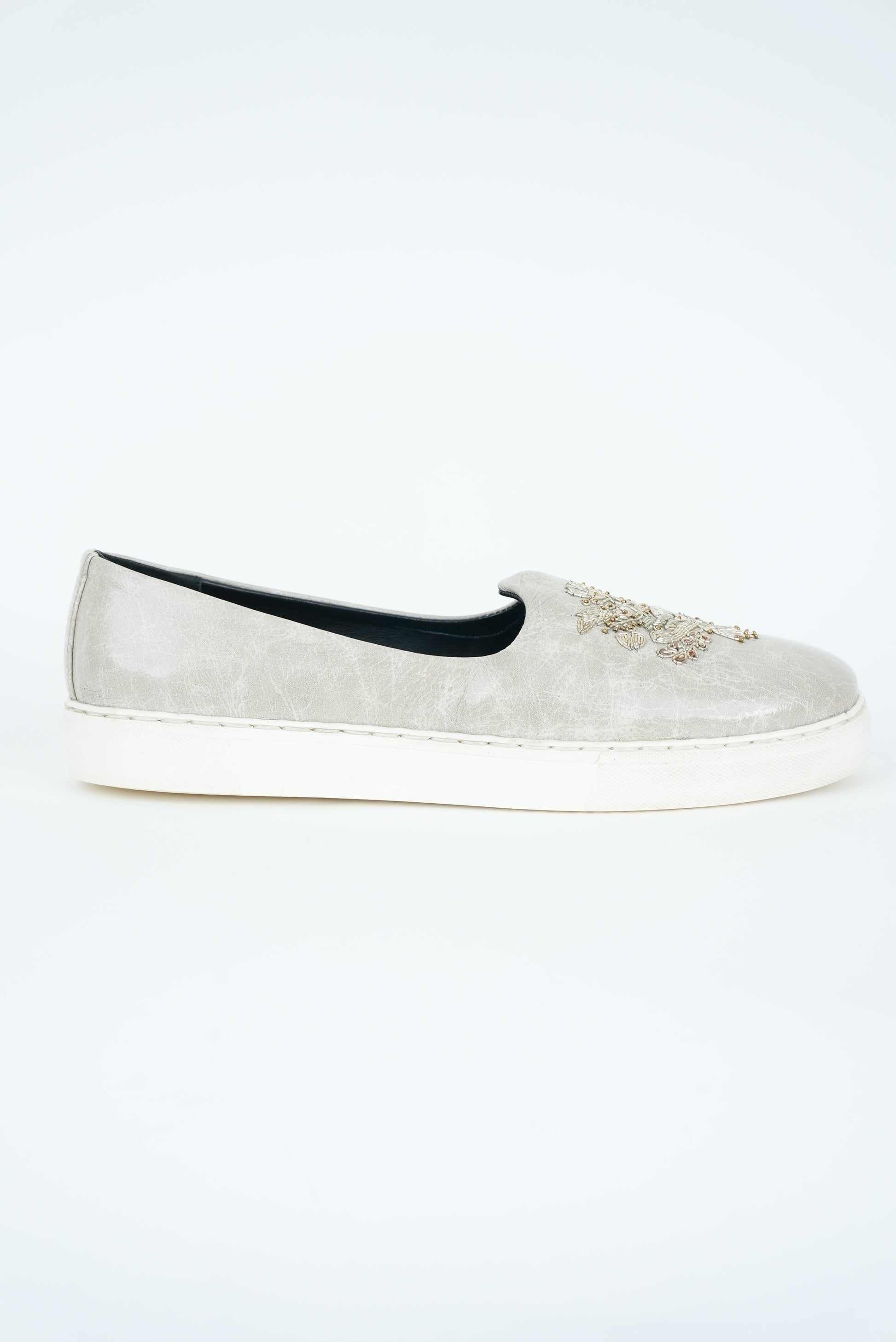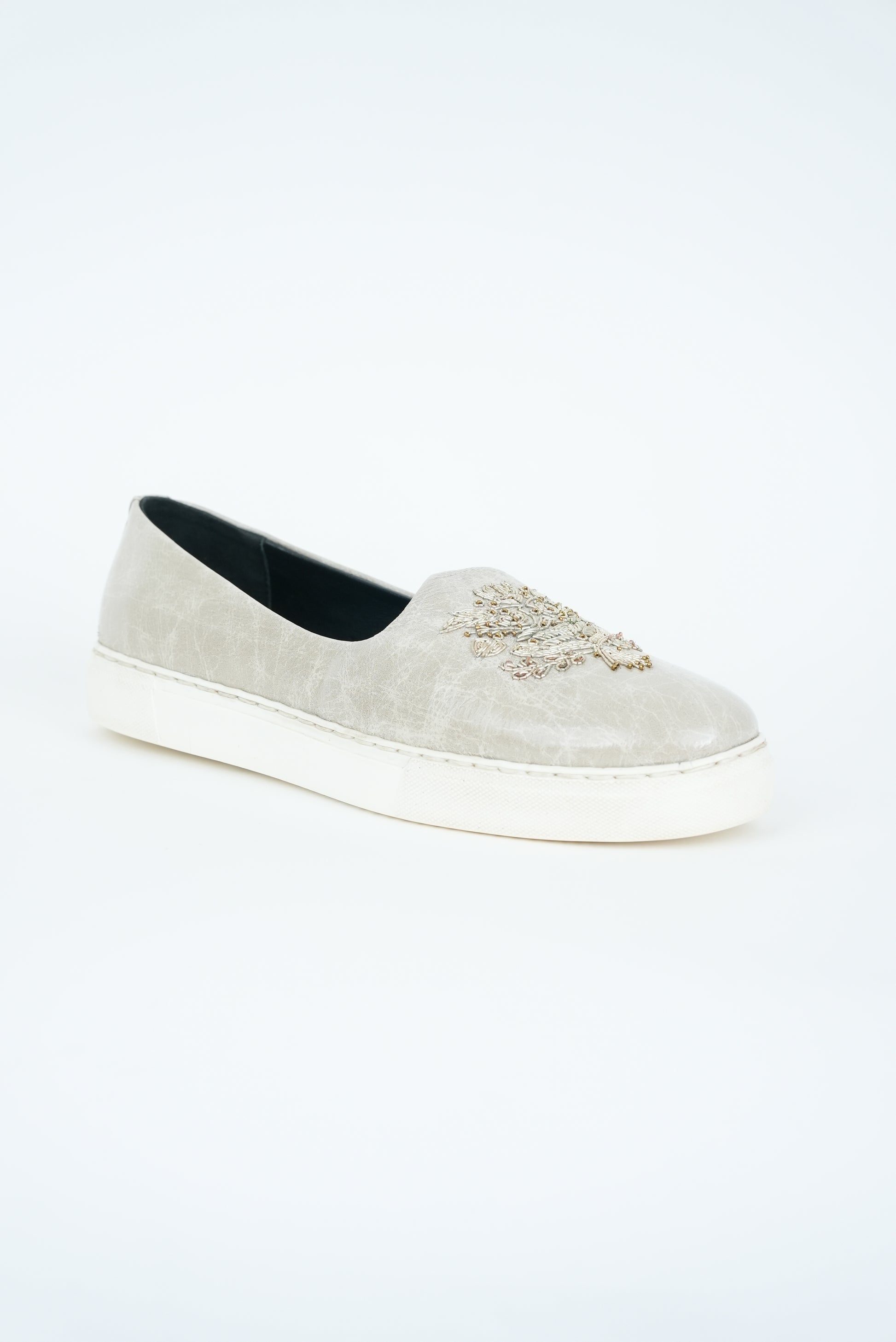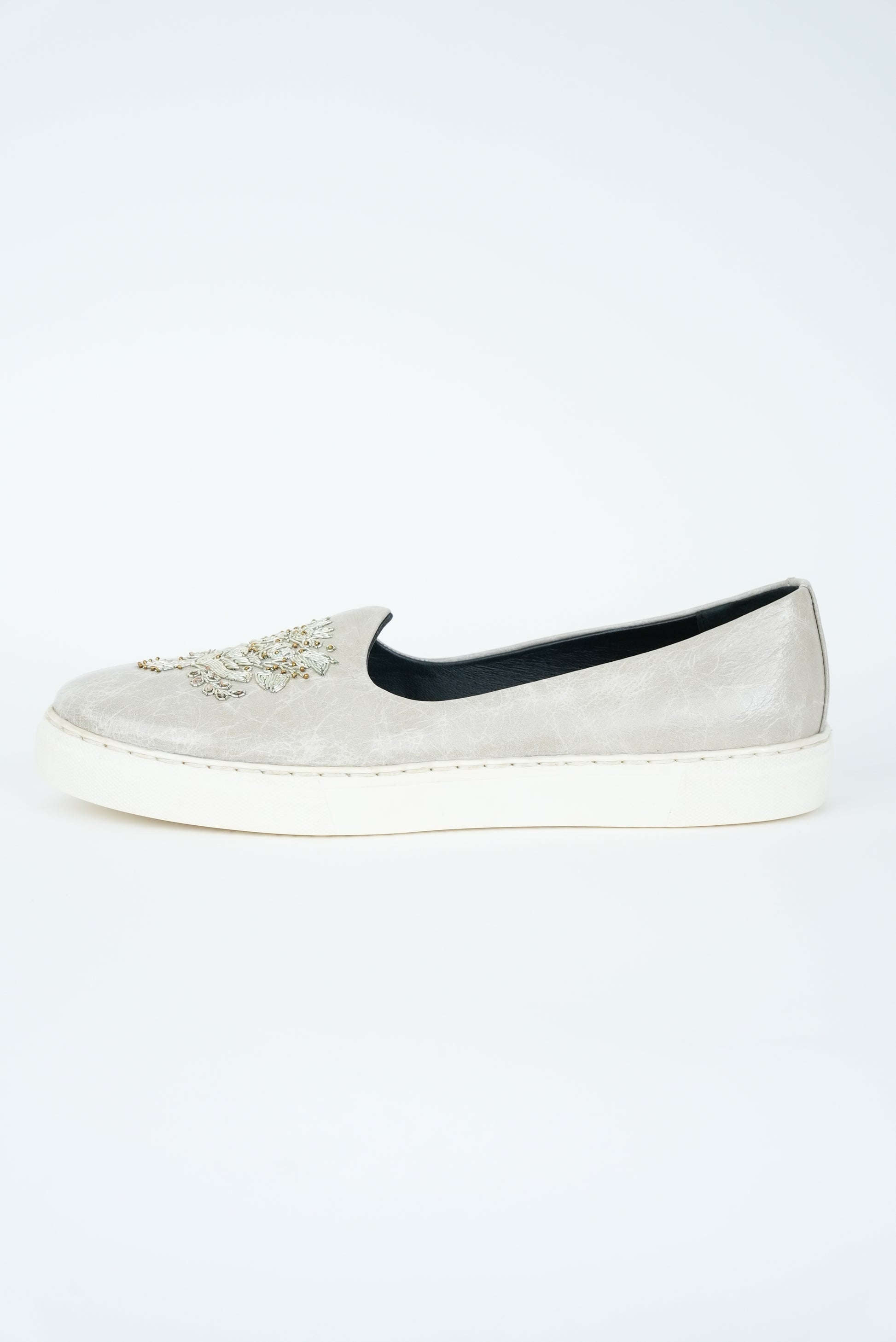 IVORY SNEAKER SOLE JUTTI WITH HANDMADE EMBRIODERY